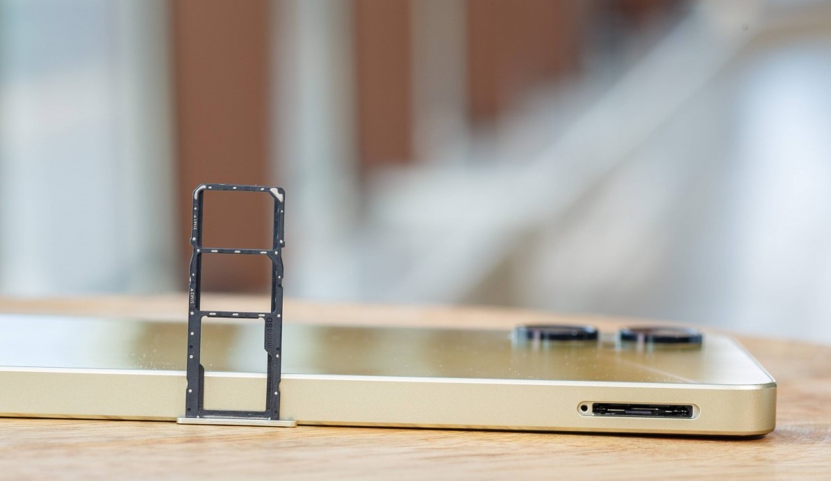 Кнопка регулировки громкости приятна на ощупь и с хорошей тактильной отдачей. Левая сторона Galaxy A06 практически не занята, за исключением лотка для карт с двумя слотами для nano-SIM и одним для microSD. Однако на нем нет прокладки, поэтому телефон не имеет никакой защиты от воды и пыли.
