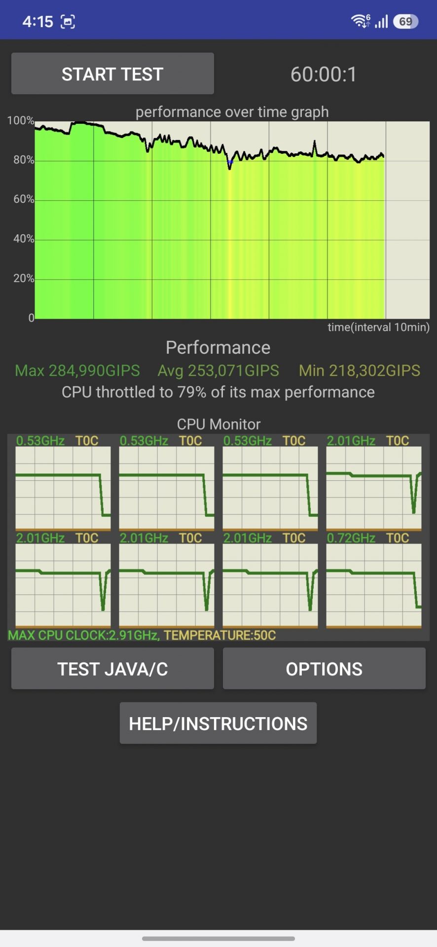 Зато стабильность при долгих нагрузках вызывает уважение. В стресс-тестах процессор удержал 79% мощности, а графика — 92%. Никакого жесткого троттлинга, смартфон становится теплым, но не обжигает руки.