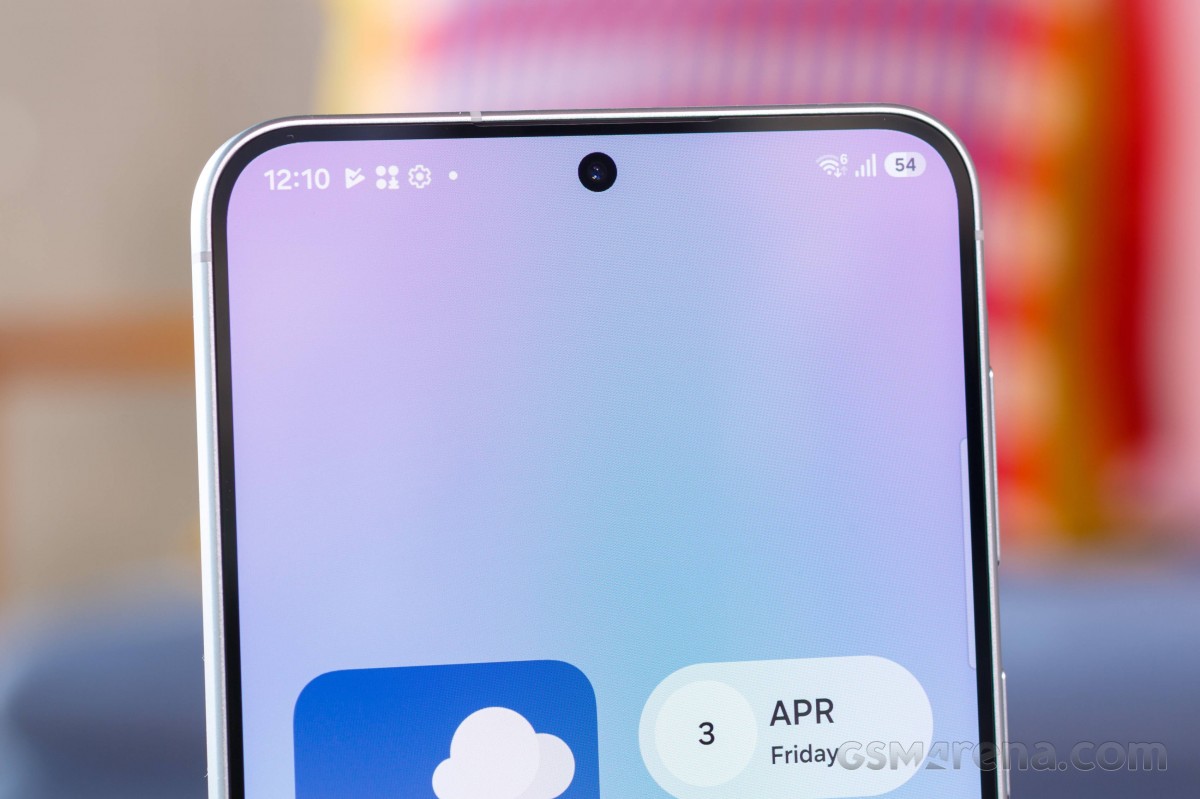 Пройдемся по деталям. Лицевую панель занимает 6,7-дюймовый Super AMOLED дисплей со слегка скругленными углами, равномерными тонкими рамками и аккуратным вырезом под 12-мегапиксельную фронталку.