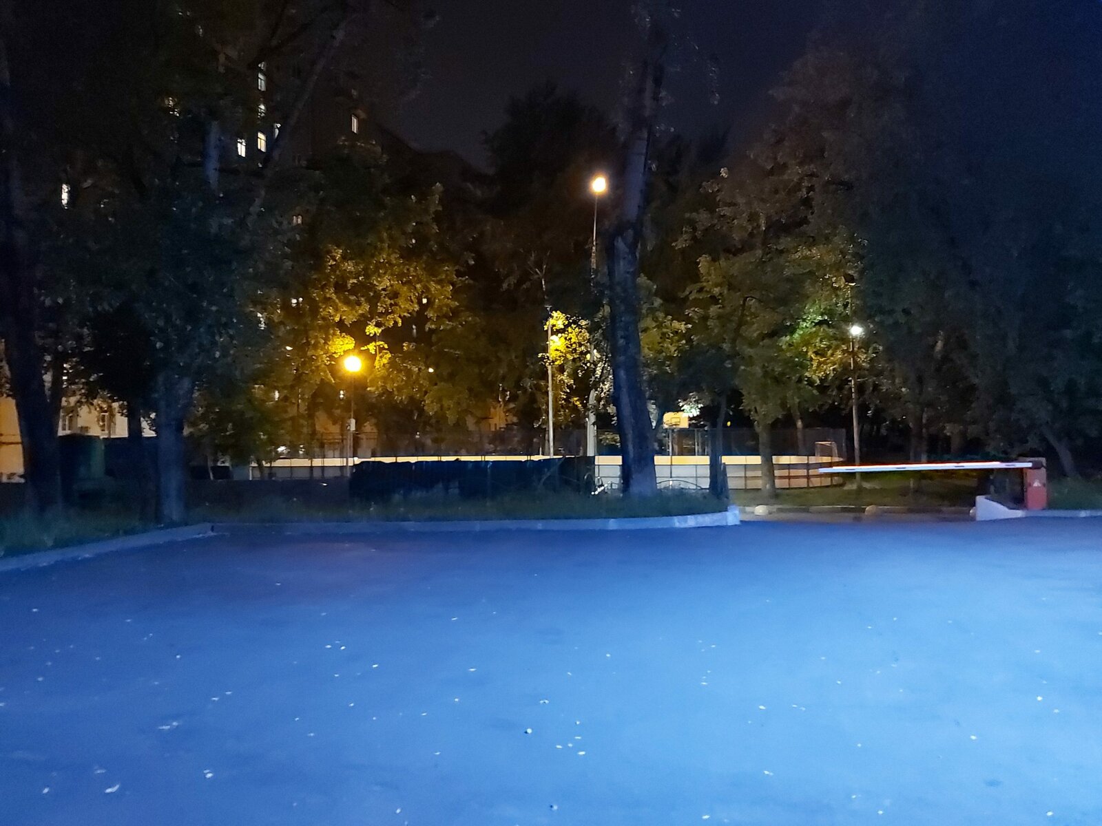 Еще хуже дело обстоит с ночной, где к шумам и низкой детализации добавляются еще и искаженные цвета. Посмотрите, как камера A70 превратила серый асфальт в синий лед на одном из снимков.