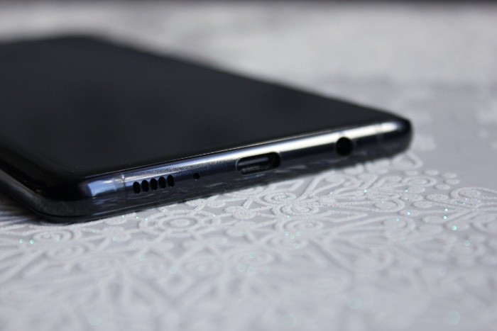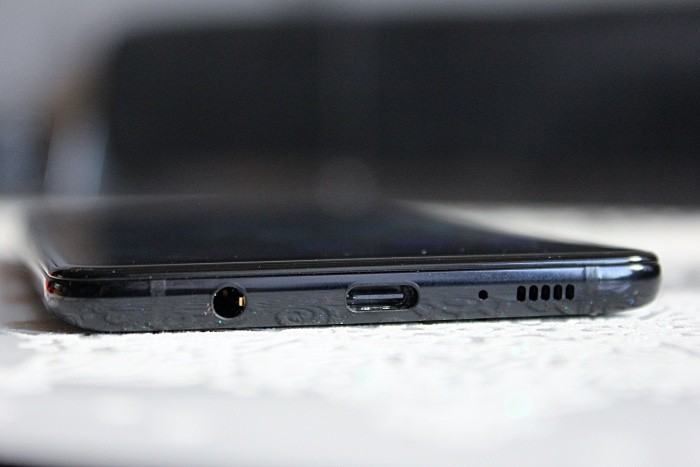 Внизу по центру расположился разъем USB Type-C, и это плюс по сравнению с Samsung Galaxy A7 2018 – там решили сэкономить и поставить уже устаревший Micro USB. Слева от USB Type-C дырочка, радующая глаз аудиофила – 3,5 мм разъем для наушников. Правее – микрофон и динамик.