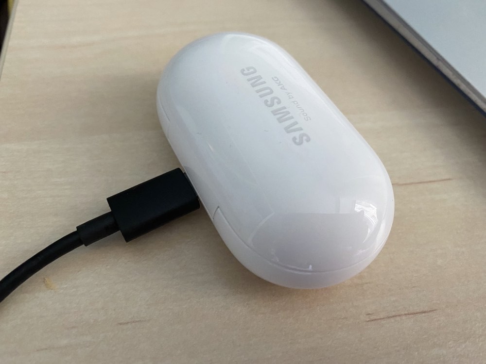 Заряжать наушники можно через кабель (он идет в комплекте, з/у, как обычно нет), также поддерживается беспроводная зарядка в Samsung Galaxy Buds Plus, так что можно просто подзарядить наушники, поставив кейс на зарядное устройство или на смартфон, если он поддерживает функцию обратной беспроводной зарядки (например, один из последних флагманов Samsung).