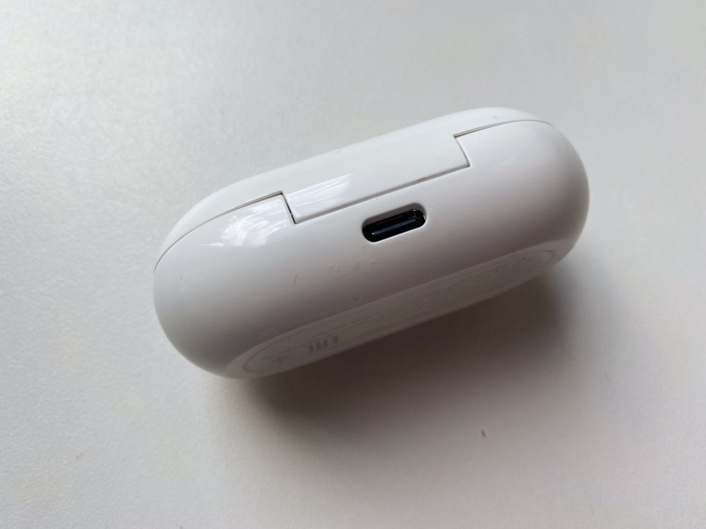 Индикатор заряда на кейсе — это одинокая светодиодная точка, ее цвет означает уровень заряда чехла: красный — менее 30%, желтый — от 30 до 60%, зеленый — более 60%. Уровень заряда наушников можно проверить в приложении.