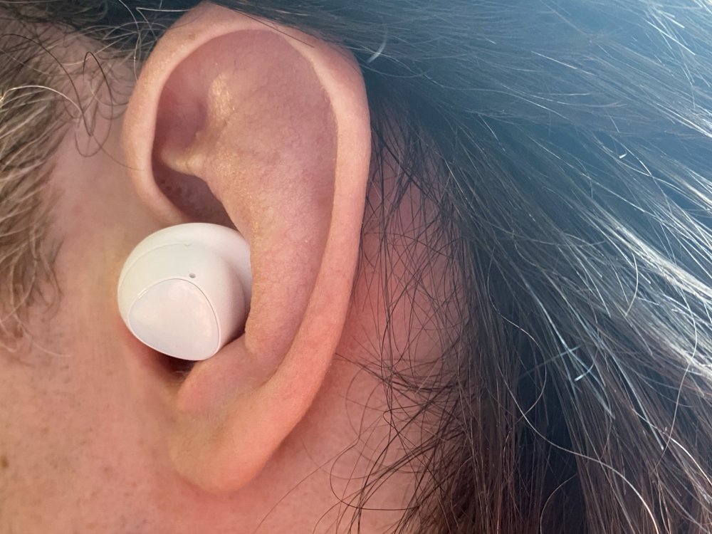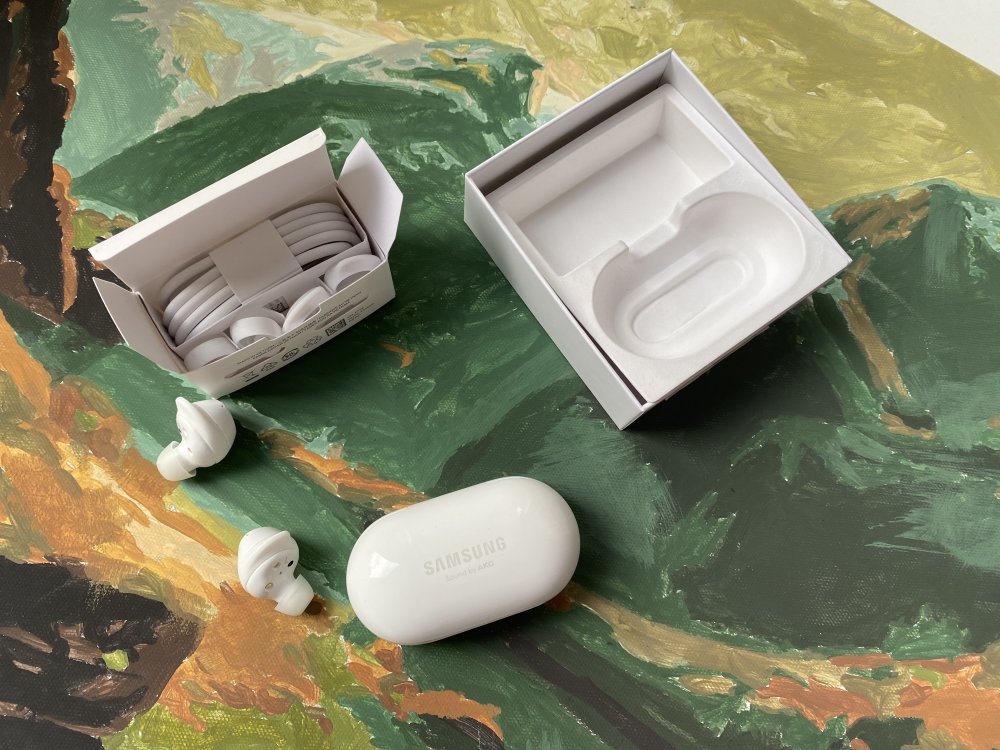 С Samsung Galaxy Buds Plus все было на удивление хорошо. Они сразу сели как влитые и явно не собирались вываливаться. Не последнюю роль тут, я думаю, играет «плавничок» на съемном силиконовом колечке, благодаря ему наушники как бы цепляются за ухо и держатся крепко. Но если вам не повезет с первого раза, как мне, то в комплекте есть и съемные амбюшуры, и колечки, так что можно поэкспериментировать.