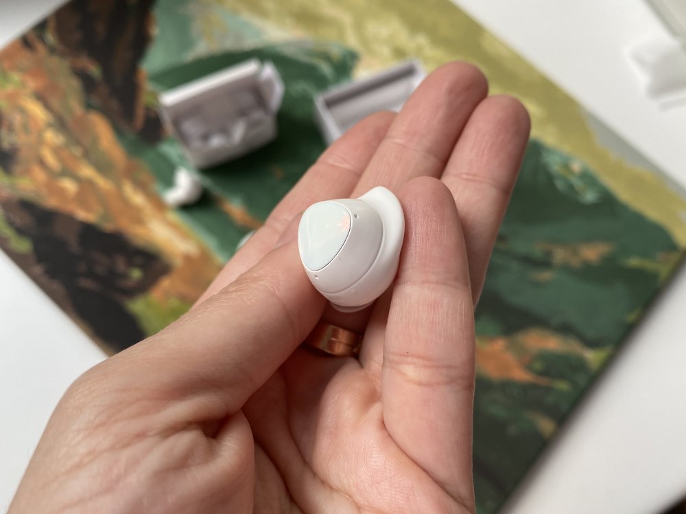 В Samsung Galaxy Buds Plus используется сенсорное управление, то есть вам не надо нажимать кнопки, достаточно просто коснуться сенсорной панели на наушниках. Многие жалуются, что это неудобно, но мне так не показалось. Хотя, конечно, пришлось немного приноровиться, панель очень чуткая, а между одним и несколькими касаниями, как говорится, большая разница.