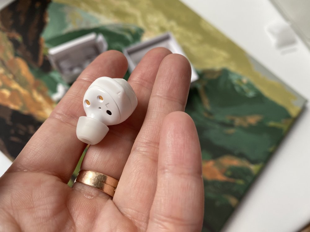 Второй момент, который мне понравился сразу, этот то, как наушники садятся в уши. С TWS-наушниками сложнее, чем с обычными: нужно повозиться, чтобы приладить их как следует в ушную раковину, найти верный размер амбюшур и все равно, поначалу нервничаешь, не выпадут ли?