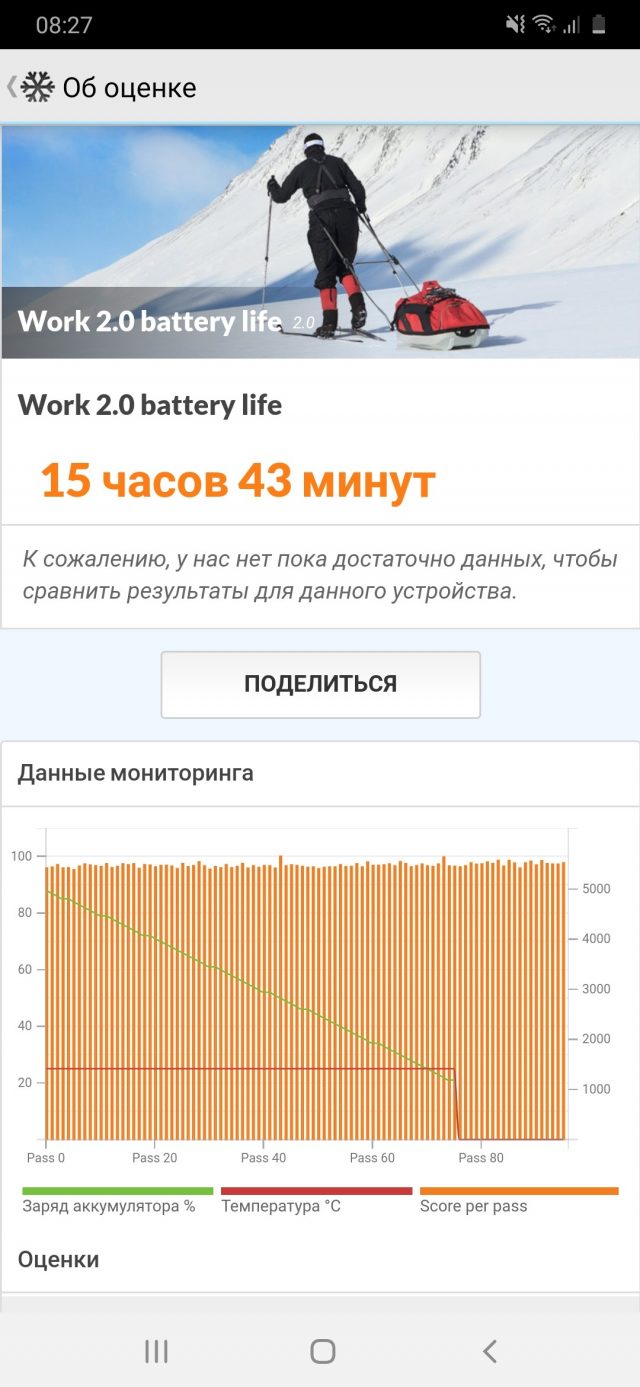 При просмотре HD-видео в MX-плеере на яркости 150 нит (в нашем случае это 45% подсветки), смартфон проработал 19 часов 20 минут. В тесте PCMark на такой же яркости аппарат продержался 15 часов 43 минуты, а при запущенной игре PUBG – чуть более 8 часов на высоких настройках графики. В целом можно не сомневаться, что смартфон при не слишком активном использовании проработает больше суток, а скорее всего, если не увлекаться играми, это будет 2-3 дня. Для большей экономии заряда в настройках смартфона можно включить темную тему оформления.