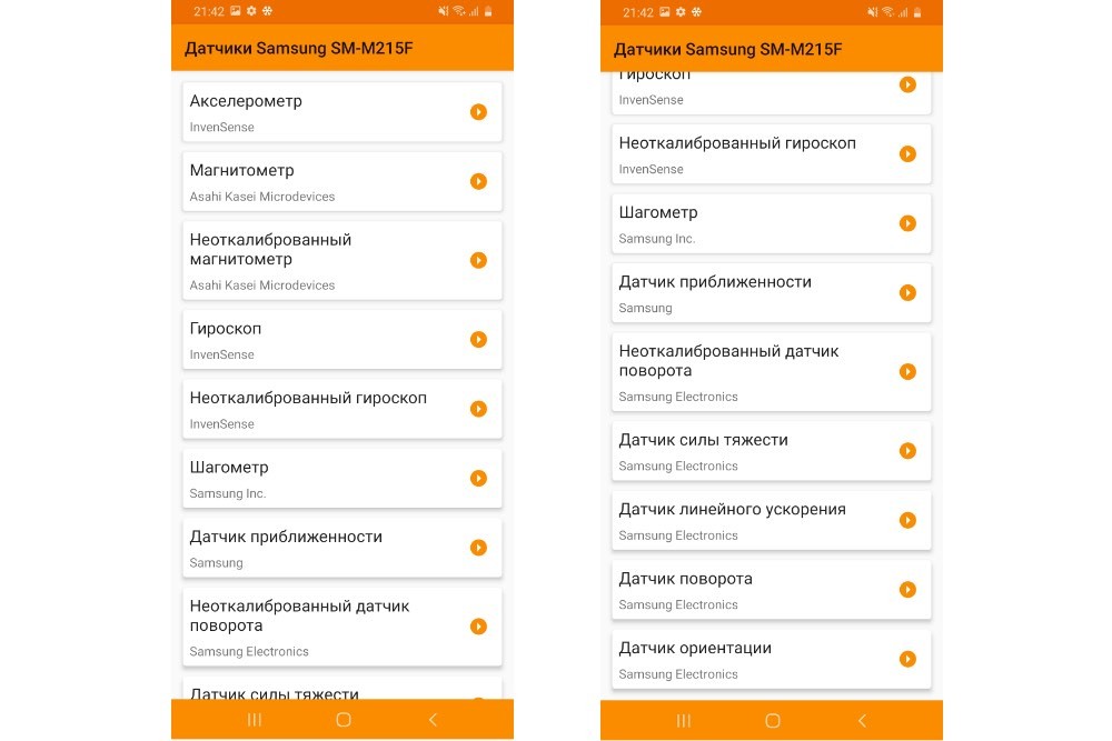 - Датчики: акселерометр, освещенность, приближение, магнитометр, шагометр, гироскоп