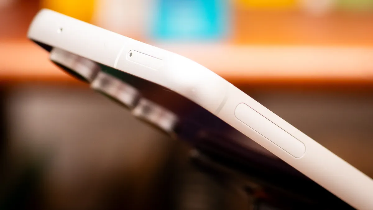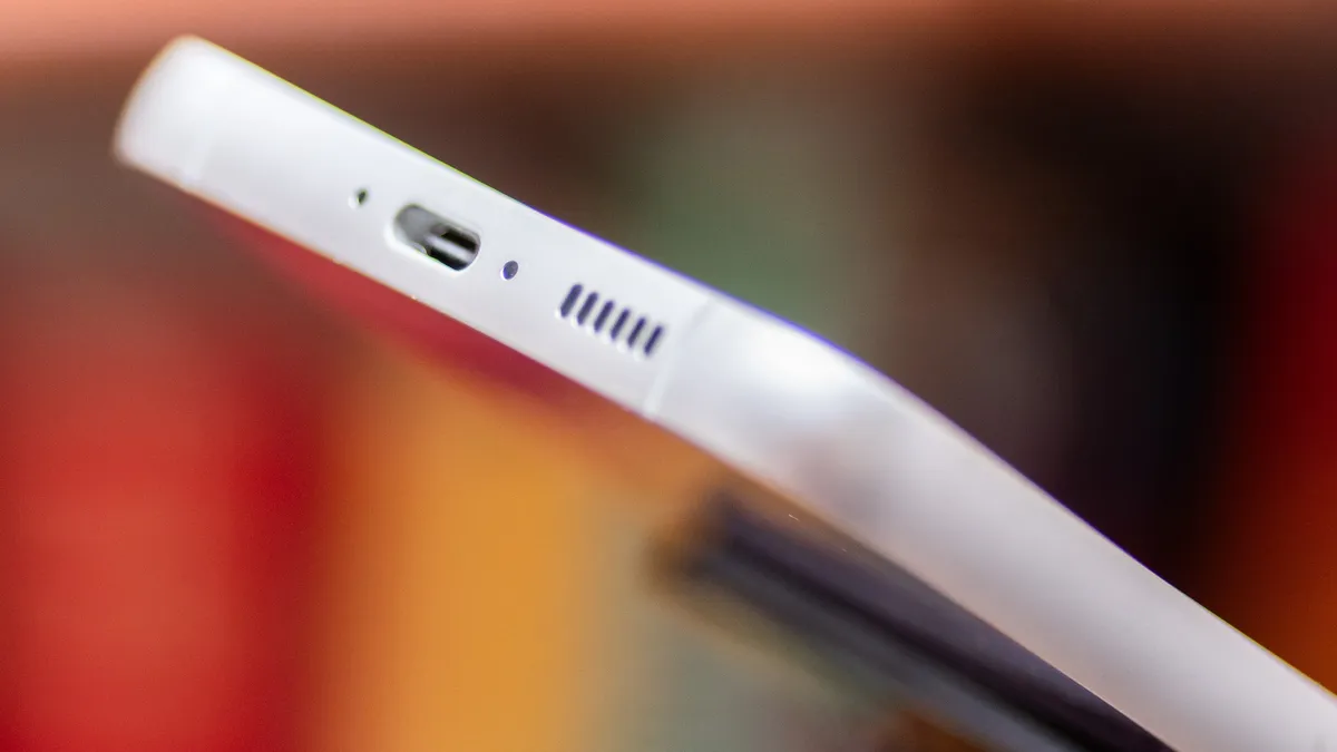 Этот телефон, безусловно, толстый. У среднего Galaxy S23 Plus дисплей больше, чем у Galaxy S23 FE, но FE толще более чем на полмиллиметра, и весит он на 13 граммов больше, чем его старший брат. Он выглядит большим и ощущается большим. Он не вызывает дискомфорта. Боковые стороны выполнены из матового металла и приятно закруглены, поэтому его очень удобно держать в руках. Это просто большой телефон.