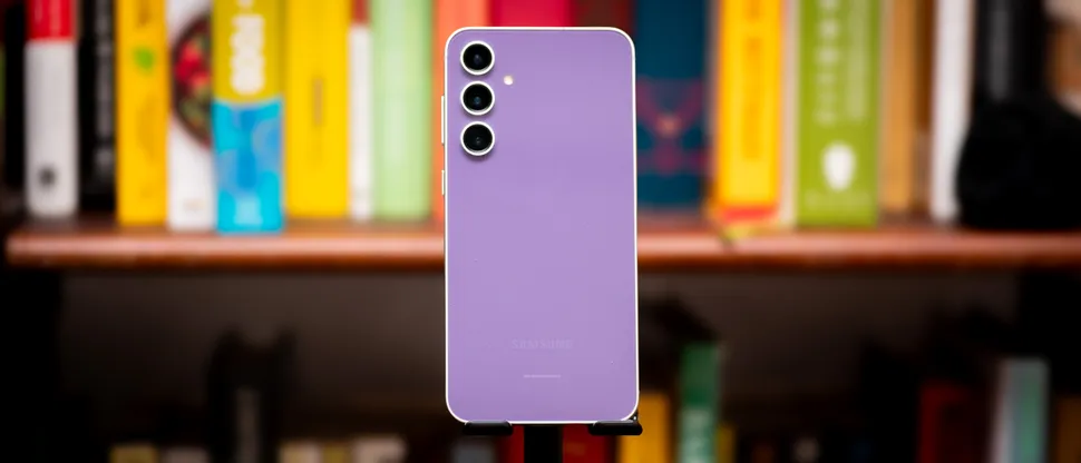 Почему стоит начать с цветов? Потому что, если вы видели один телефон Galaxy S, значит, видели и все остальные. Дизайн Galaxy S23 FE взят прямо из учебника Galaxy S. Стекло спереди и сзади. Камеры похожи на иллюминаторы, выглядывающие из-под пурпурного (или оранжевого) моря. Брендинг удивительно тонкий: слово «Samsung» не видно, если только не поднести телефон к свету.