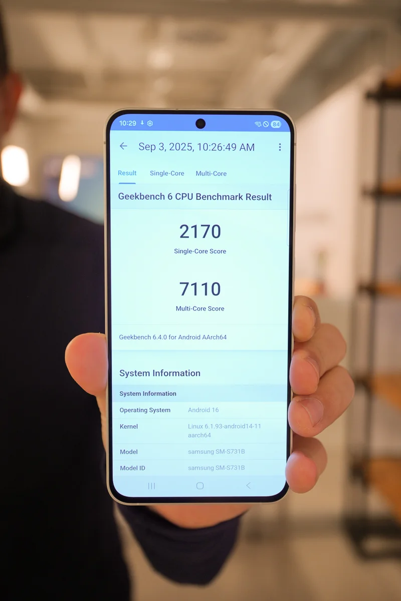 Galaxy S25 FE превосходит по производительности как своего предшественника (в котором используется маломощная версия того же чипсета — Exynos 2400e), так и Pixel 9a, а также Galaxy A56. Одноядерный результат очень близок к тому, что показал S24 FE, но многоядерный результат существенно отличается.
