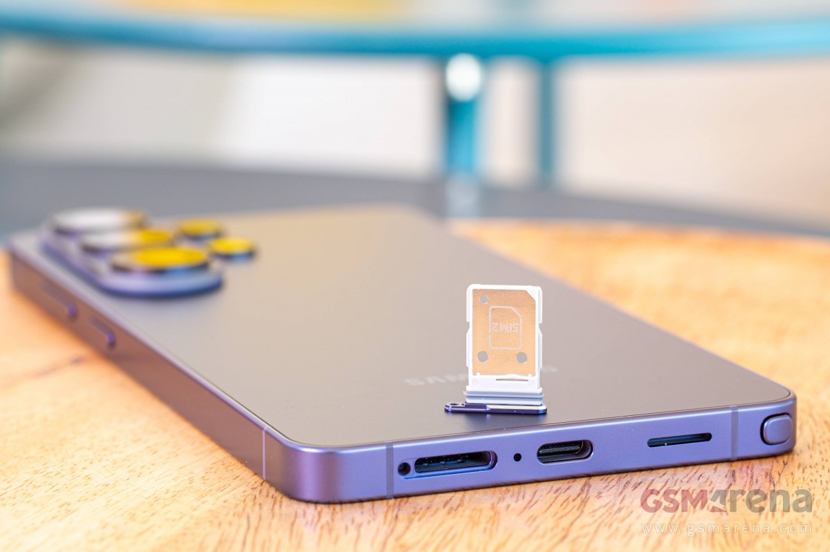 На гранях всё по классике. Справа торчат качелька громкости и кнопка питания, сверху — прорезь динамика, а на нижнем торце приютился разъем Type-C. Рядом с портом зарядки находится лоток под две физические симки (одна отвалится, если активировать eSIM), а в левом углу прячется гнездо для фирменного пера S Pen.