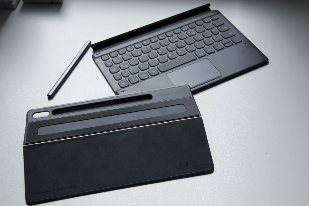 Чехол-клавиатура заметно добавляет веса планшету, и с ней он становится более толстым и неуклюжим, но при этом, надо отметить, что держать планшет в чехле удобнее, чем без него: Samsung Galaxy Tab S6 довольно скользкий и «голый» планшет ощущаешь с чувством легкой неуверенности.