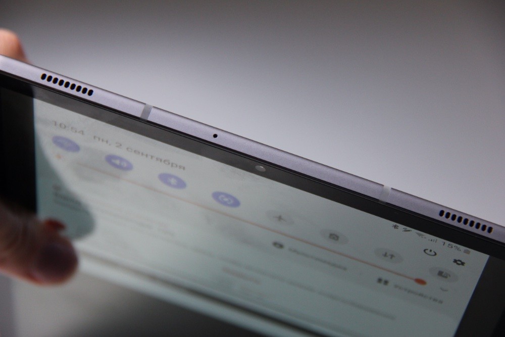 На верхнем и нижнем торце у планшета разместились динамики (кстати, это динамики AKG с Dolby Atmos), сверху также расположены антенны и микрофон, ну а снизу — традиционно порт USB Type-C.