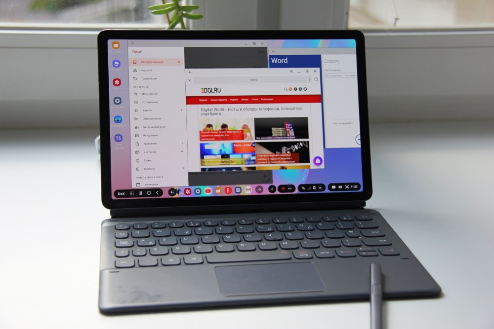 Интереснее всего режим DeX выглядит, если упаковав планшет в чехол-клавиатуру. Кстати, его вам подарят, если успеете сделать предзаказ. И с этим чехлом Samsung Galaxy Tab S6 становится совсем как ноутбук (только маленький).