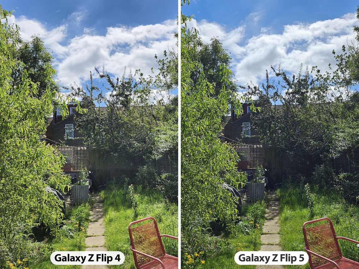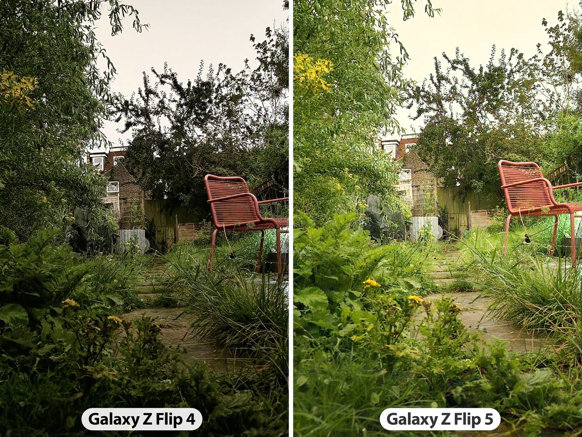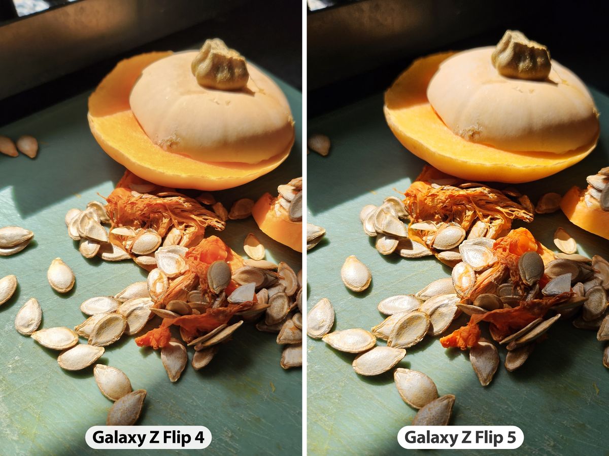 На снимках проявляется естественная глубина и «боке», а также улучшенная детализация изображений, полученных с использованием основных объективов и цифрового зума до 10x. Оттенки кожи, цветопередача и баланс белого проработаны лучше, а при съемке в условиях слабого освещения наблюдается улучшенная детализация и баланс белого. Flip 5 выделяется наличием FlexCam, что делает процесс фотографирования проще, чем использование видоискателя размером с марку на Flip 4, а увеличенный дисплей на крышке способствует этому.