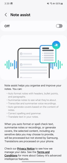 ИИ – это самое популярное слово на каждом ключевом выступлении, и Samsung делает все возможное, чтобы опередить развитие Google. В Flip6 есть целый ряд функций, которые помогут сделать вашу жизнь проще, например, к уже имеющимся функциям Note Assist Samsung добавила функции автоматической транскрипции, перевода и обобщения голосовых записей, а также перевод PDF-файлов.