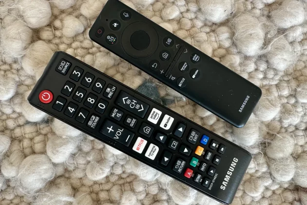 Навигация по интерфейсу смарт-телевизора, а также по понятным и простым меню настройки может осуществляться несколькими способами. Доступно голосовое управление Amazon Alexa (а также Bixby, для самых странных), и в комплект входят два пульта дистанционного управления. Один из них довольно маленький, сделан из жёсткого и дешёвого на ощупь пластика и подходит для любых случаев, а другой ещё меньше, сделан из жёсткого и дешёвого на ощупь пластика и подходит только для самых распространённых функций.