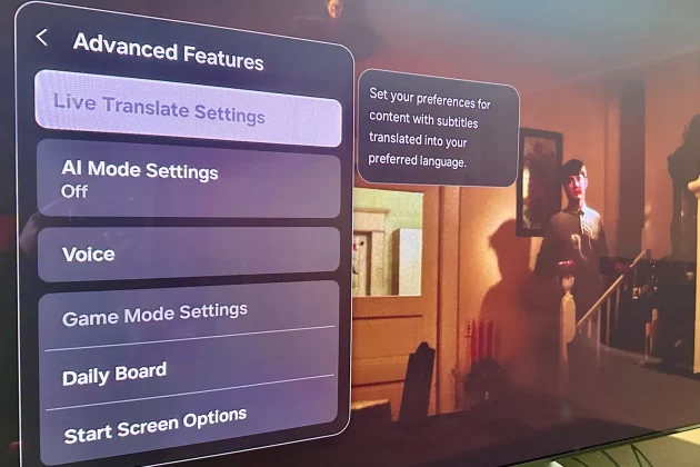 Да, — это 4K-панель QD-OLED с поддержкой HDR вплоть до HDR10+ Adaptive. Да, она поддерживает звуковые дорожки Dolby Atmos благодаря встроенной аудиосистеме мощностью 60 Вт с 2.1.2 каналами. И да, каждый из четырёх входов HDMI соответствует стандарту 2.1, а это значит, что каждый из них поддерживает частоту 144 Гц, Freesync Premium Pro, ALLM, HGiG, G-Sync и всё остальное, что интересует геймеров на ПК и консолях. Но Samsung хочет, чтобы вы знали не только это, но и то, что S90F — это всё об искусственном интеллекте.
