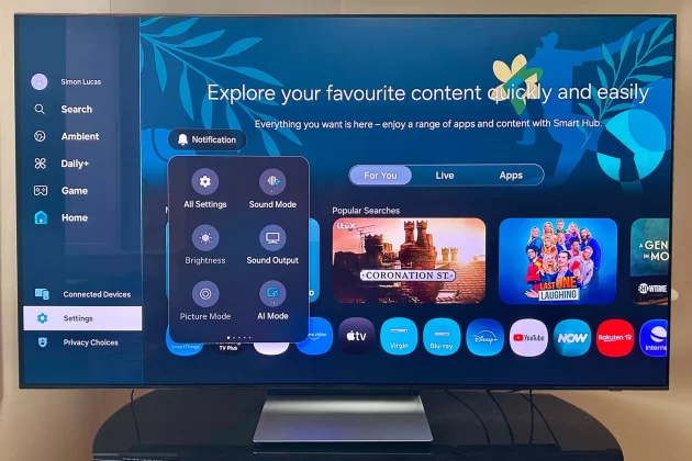 Он оснащён полноценным процессором обработки изображений NQ4 AI Gen 3, как и топовая модель S95F, и это позволяет использовать множество функций, ориентированных на искусственный интеллект. Есть функция 4K AI Upscaling Pro, которая использует 128 нейронных сетей. Есть функции AI Motion Enhancer Pro, AI Colour Booster Pro, AI Customisation и AI Optimisation. Включите их все, если вам нравятся слишком насыщенные цвета и яркость, от которых вы щуритесь.