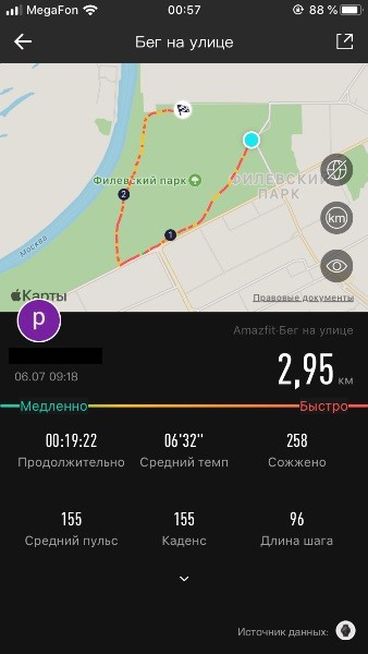 После окончания тренировки его вместе с графиком изменения скорости и прочей статистикой можно посмотреть как на смартфоне, так и на самих часах.
