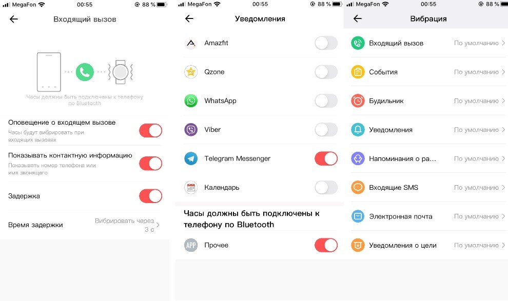 Умные часы Amazfit T-Rex сигнализируют вибрацией и отображают на экран уведомления о входящих звонках, сообщениях мессенджеров и других приложений с подключенного смартфона. Список разрешенных уведомлений настраивается через Amazfit Watch.