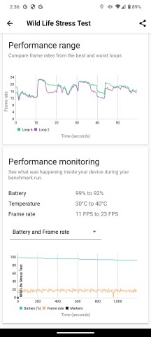 Здесь видно широкий диапазон показателей батареи, так что, похоже, время автономной работы в основном зависит от оптимизации программного обеспечения и настроек конкретного производителя, и HMD не является лучшим в этом отношении.