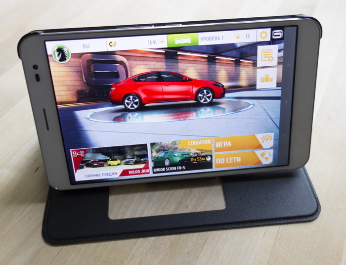 Работает планшет на собственной четырехъядерной SoC HiSilicon Kirin 910 с максимальной частотой 1.6 ГГц. Она вышла в начале нынешнего года и приятно отличается от предшественниц усовершенствованным техпроцессом – вместо 40 нм в Huawei наконец-то освоили вполне современный для решений с архитектурой ARM 28 нм. Использованный GPU Mali-450 MP в некоторых источниках называют вдвое более быстрым, чем Mali-400, однако это правда лишь для восьмиядерных конфигураций, а в X1 7.0 графических ядер всего четыре. Это, впрочем, не мешает обеспечивать вполне приличную производительность, благо частота подросла с 500 до 650 МГц. Приличную, но не рекордную. В моем любимом (но совсем не безупречном) Antutu планшет получил 21 800 баллов. Это на уровне прошлогодних планшетов на Qualcomm S4 (например, Sony Xperia Tablet Z на APQ8064). Все игры, включая довольно требовательные Asphalt 8 и Real Racing 3, работают быстро и гладко с максимальными настройками графики. И вообще – нет характерных подергиваний, свойственных для недорогих китайских SoC. И это не может не радовать.