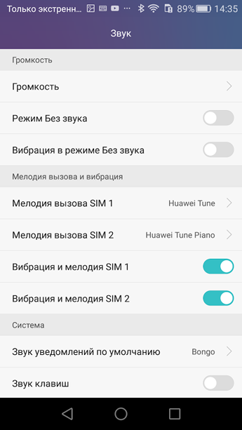 В настройках SIM-карт задаем разные сигналы на звонки и сообщения для каждого номера. Функция не новая, просто отмечу, что она тут присутствует.