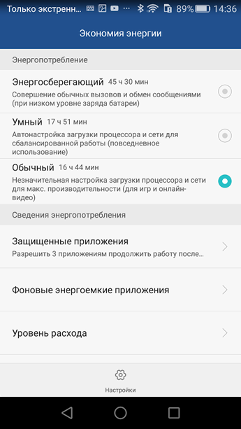 Настройки энергосбережения: