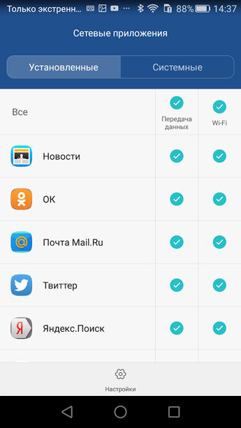 Мы уже настолько привыкли к тому, что китайские смартфоны идут с парой SIM-карт, что наличие двух слотов в устройстве воспринимается как само собой разумеющийся момент. Новинка оправдывает ожидания, в Honor 5Х можно поставить две карты, одна из них формата micro-SIM, а вторая nano. Смартфон стабильно ловит сети Wi-Fi 802.11 b/g/n на частотах 2,4 и 5 ГГц. Обе SIM-карты могут работать в LTE-сетях, это выбираем в настройках. Возможно, кому-то будет не хватать NFC, я люблю эту функцию за простоту: приложил телефон к наушникам, вот и связка готова, не нужно режим поиска запускать. Среди настроек полезна функция для экономии трафика, можно лишить приложения доступа в интернет по своему желанию.