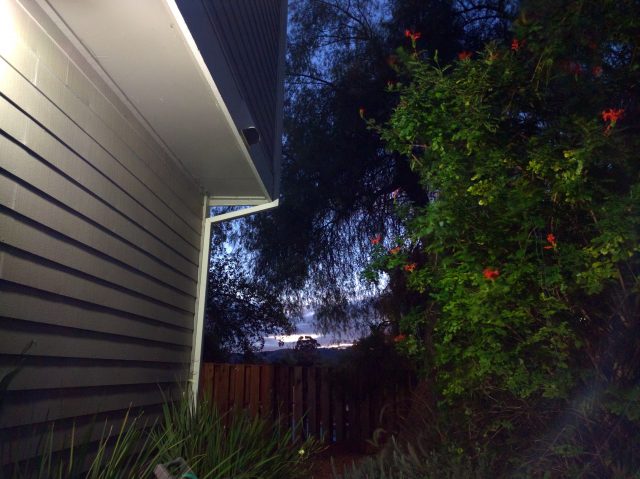 Мой задний двор после заката. Радует, что фотография получилась не слишком зернистой, и в композиции удалось задействовать искусственное освещение