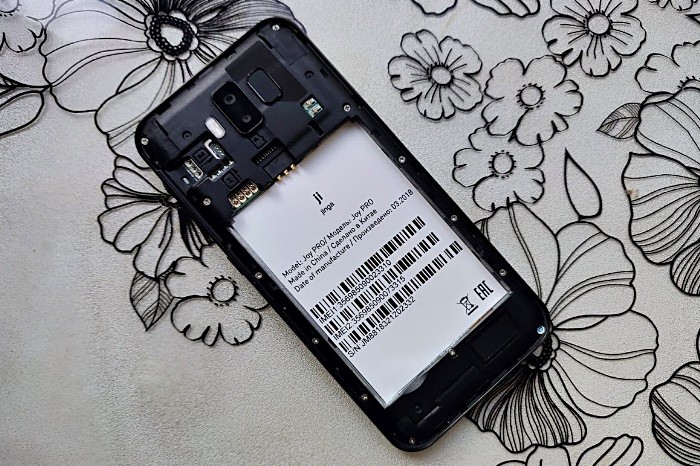 И третья ключевая особенность этого смартфона — съемная батарея. Первое, что придется сделать обладателю Jinga Joy Pro — снять заднюю крышку смартфона (впрочем, это совсем нетрудно) и вставить в него блок аккумулятора. И заодно карты — смартфон поддерживает работу двух сим-карт и карты памяти. Слоты, кстати, раздельные, и это хорошо.