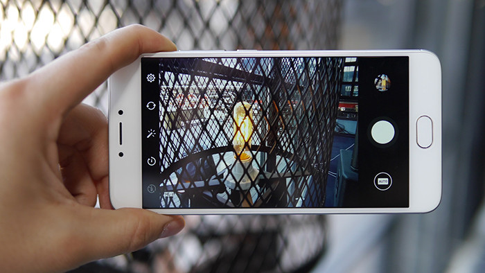 Фронтальная камера на 5 мегапикселей, она пишет видео в Full HD. В таком же качестве делает ролики и основной 13-мегапиксельный сенсор. В Meizu уже который год не могут адаптировать меню в режиме съемки под альбомный формат, вроде мелочь, но тут этого нет.