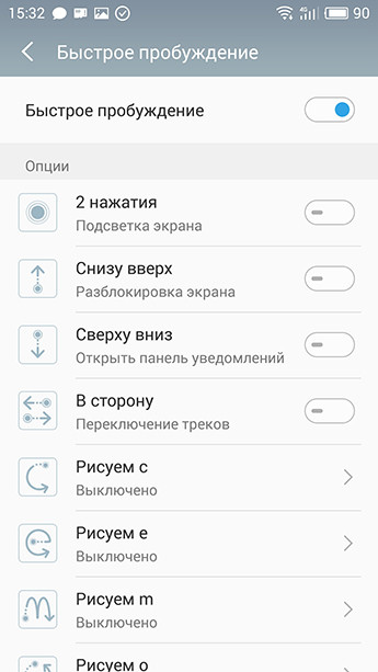 Тут нет подменю с приложениями, все значки сразу попадают на рабочие столы. Запущенные программки можно увидеть, если провести пальцем от нижней границы экрана вверх. Странно? Тут же нет дополнительных кнопок, как в обычном Android, так что нужно привыкать к некоторым особенностям. Зато телефон можно «разбудить» двойным постукиванием по экрану или быстро запускать программы, рисуя буквы на заблокированном экране. Чем только тут себя не потешишь.