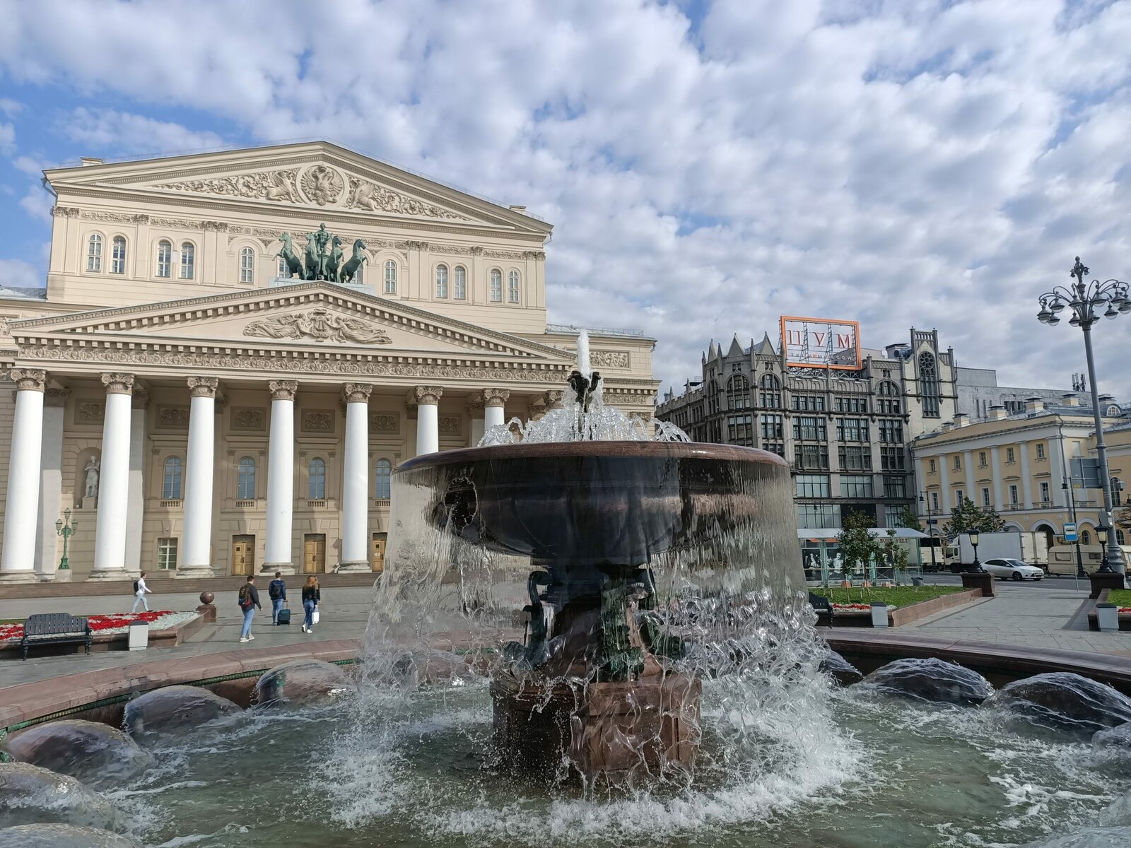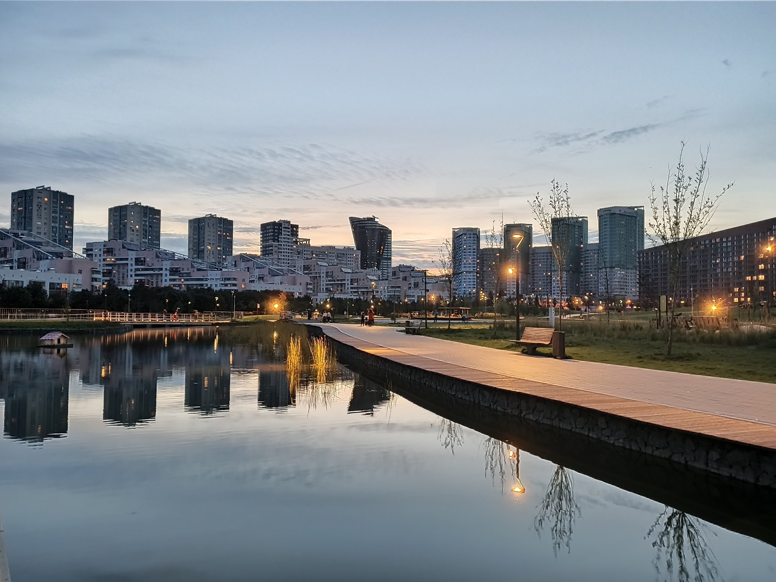 Пейзаж с нестабильной яркостью и объектом в центре (фонтан) передан с исключительно естественной цветопередачей и отрисовкой струй воды. Немного сбойнул искусственный интеллект при отражении сложного пейзажа против солнца, ушел в интенсивный голубой тон, но не потеряв при этом детали. Ну а съемки на природе в отсутствие солнца показали хороший результат по фокусировке, хотя, конечно, небо получилось немного засвеченным.