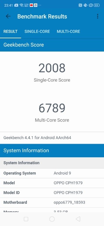 Проверка с помощью синтетических тестов ломает логику старшинства моделей в линейке. Тест Geekbench 4 показал 2008 в одноядерном и 6789 в многоядерном режиме. Эти результаты заметно выше, чем у Oppo Reno (находящегося в более высоком ценовом сегменте), результаты которого 1499 и 5917 соответственно. Тест AnTuTu продемонстрировал, хоть и не так ярко, ту же тенденцию – 158961 у Oppo Reno Z, 157500 у Oppo Reno.