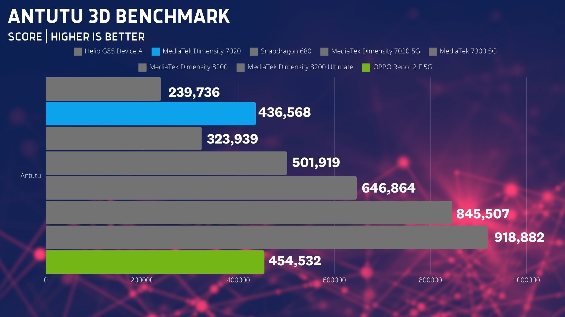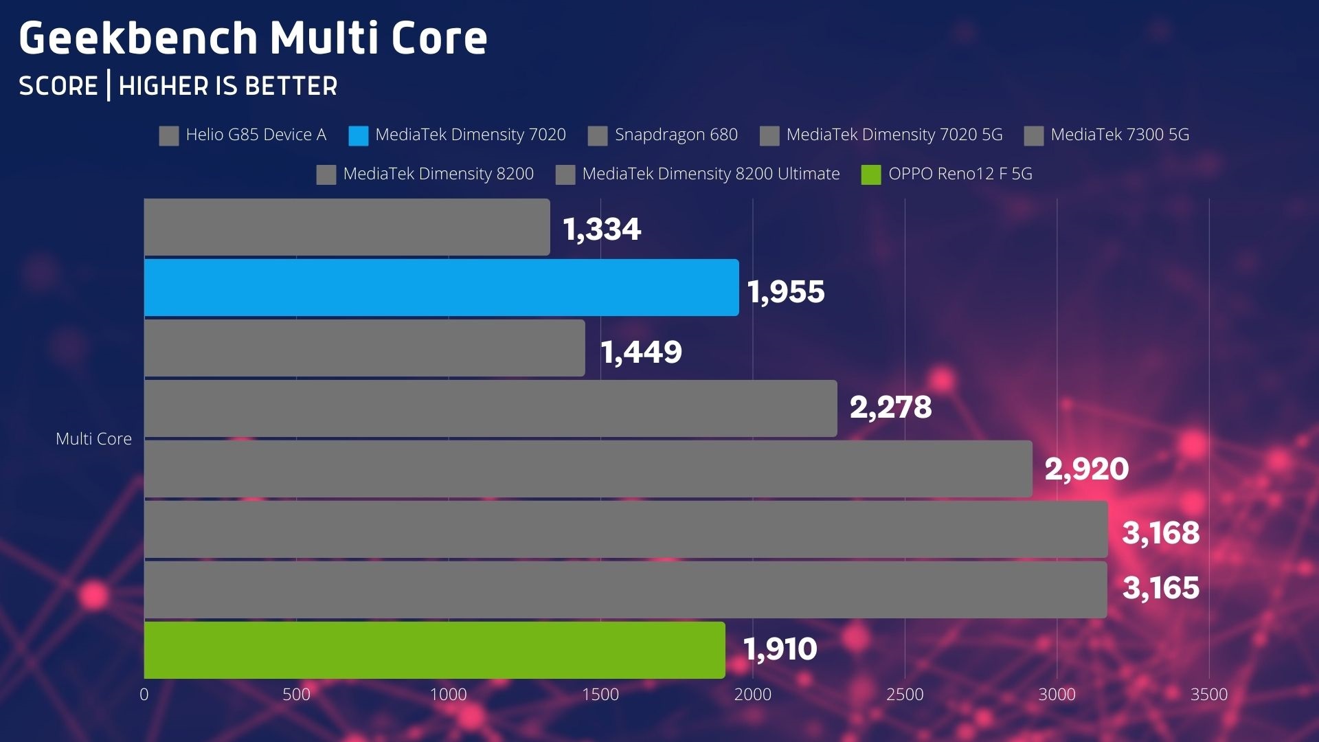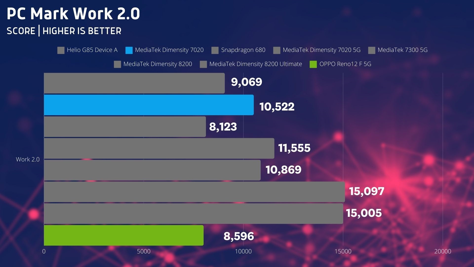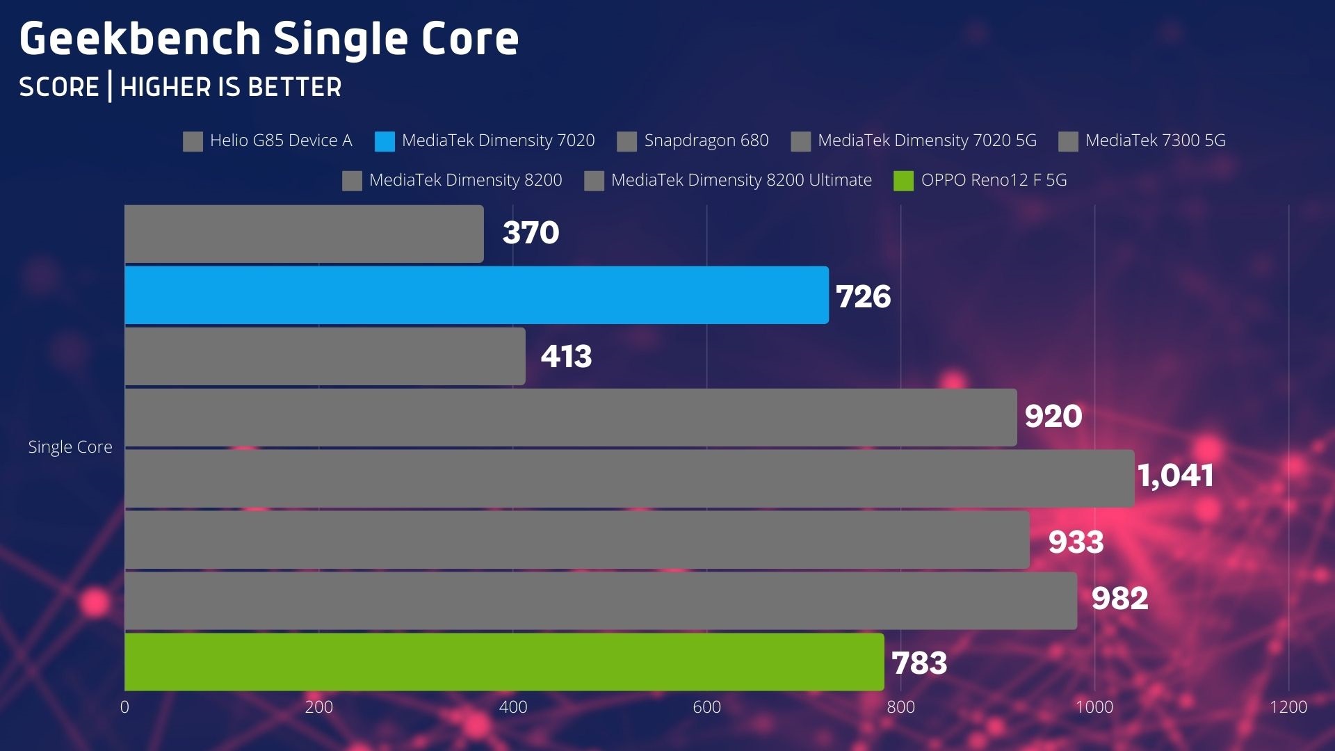Однако Reno12 F 5G не лишен недостатков. Его общая производительность, как показывают результаты бенчмарков, оставляет желать лучшего по сравнению с конкурентами в том же ценовом диапазоне. Это может стать серьезной проблемой для пользователей, которые ставят производительность в приоритет, т.е. используют ресурсоемкие приложения или любят поиграть.