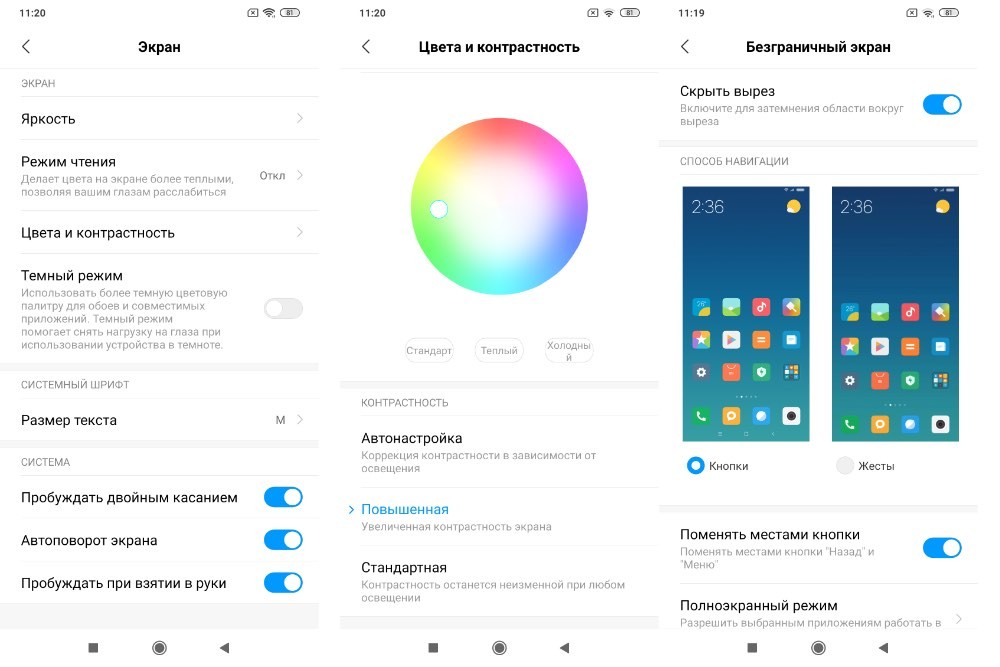 Да все не так. Не очень яркий, не слишком контрастный и слегка уходящий в синеву дисплей не слишком радует глаз. В настройках можно вручную поколдовать над яркостью и даже настроить контрастность, но сделать дисплей Redmi Note 8T идеально приятным для глаз мне все же не удалось.