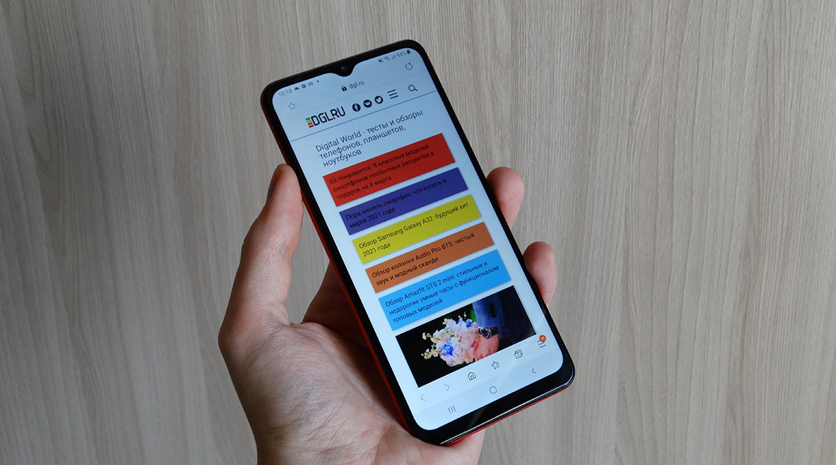 Но не будем перехваливать дизайн Galaxy A12 — он не идеален. На нем нет светодиодного индикатора событий, фронтальная камера сделана в виде обычной капли, а экран быстро заляпывается и с трудом оттирается из-за отсутствия олеофобного покрытия. Блок с камерами на задней стороне выпирает, поэтому небольшие покачивания при нажатии на экран лежащего аппарата неизбежны.