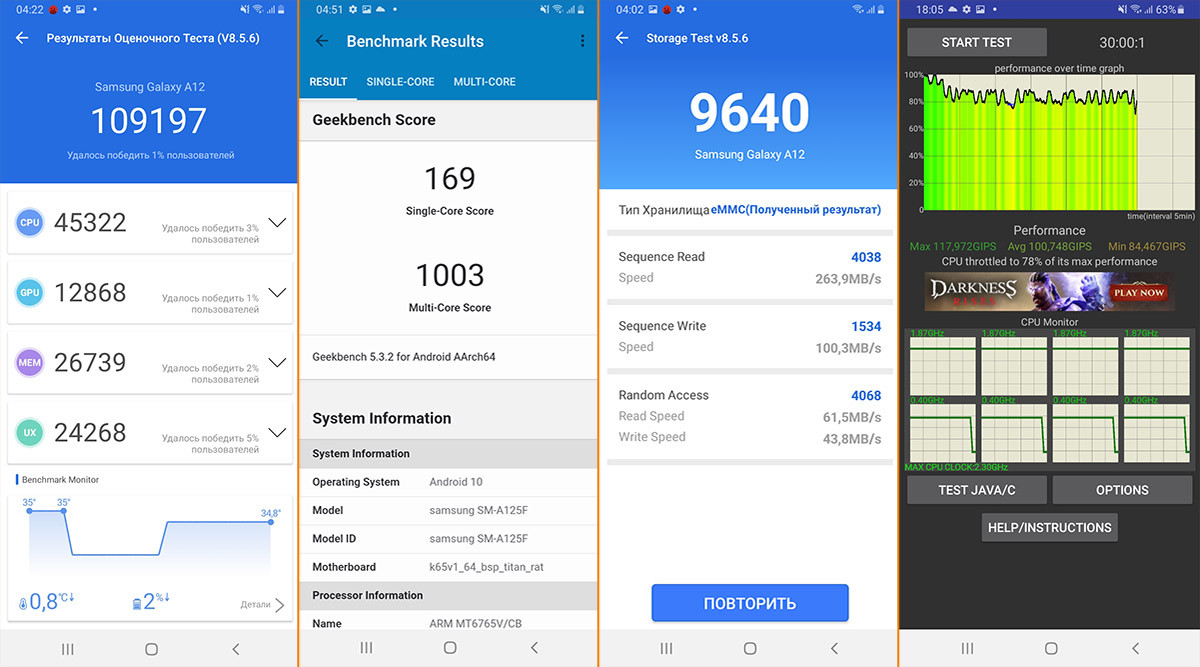 Производительность и операционная система Samsung Galaxy A12