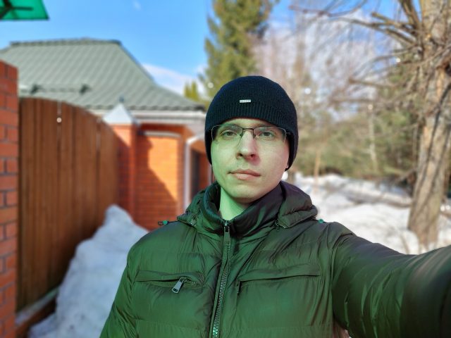 Фронтальная камера, несмотря на высокое разрешении 32 мегапикселя (по умолчанию — 12 или 8 Мп, в зависимости от выбранного угла обзора), даже не пытается выдать детализированные снимки. Результат больше нацелен на применение различных фильтров, разглаживающих кожу, и есть вероятность, что часть из них работает по умолчанию и не выключается. Впрочем, для любительских селфи и видеосвязи будет достаточно и этого.