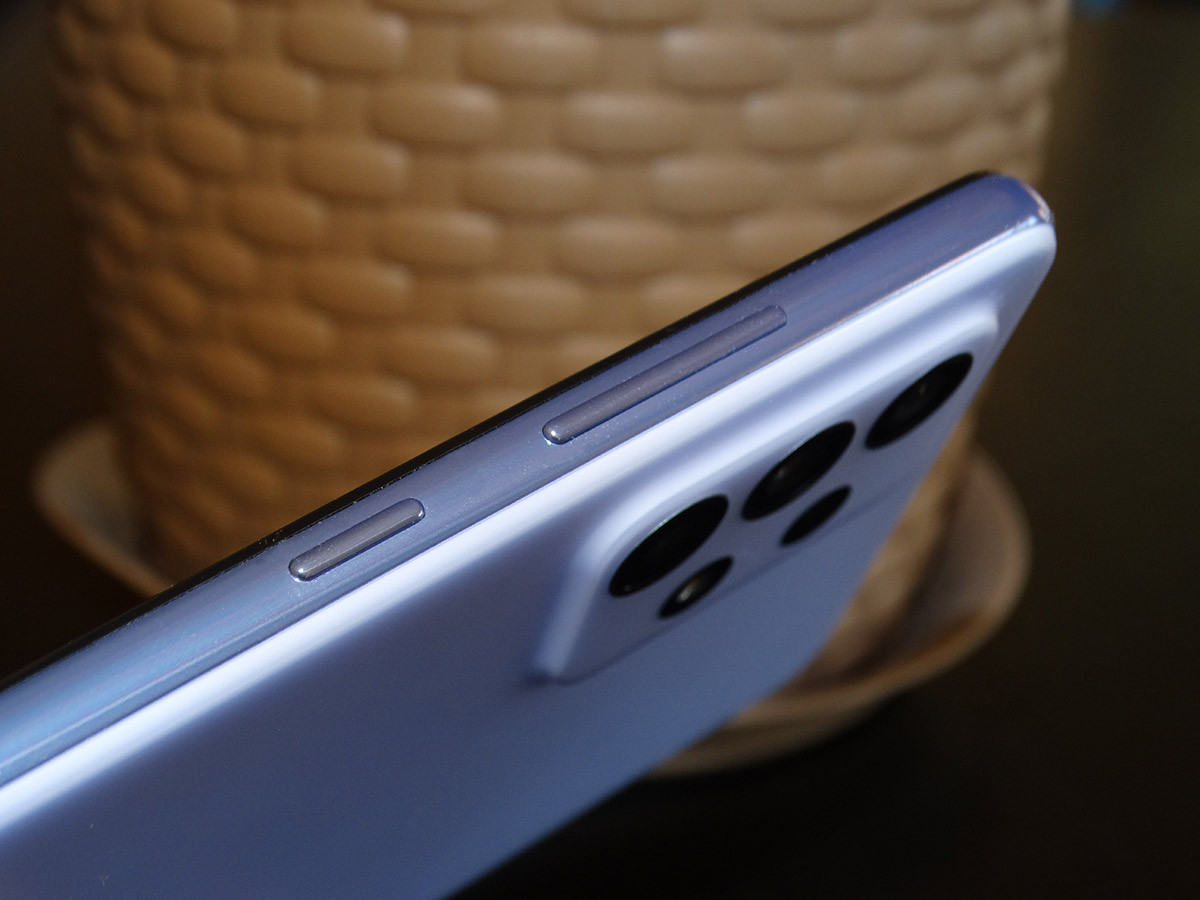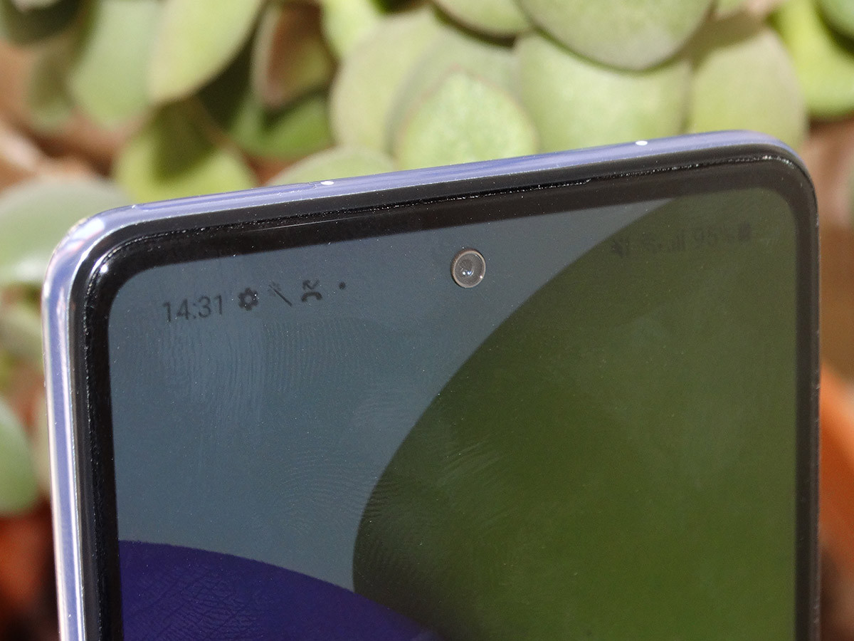 Samsung Galaxy A52 отличает изящный дизайн и остроумные решения. На передней стороне смартфона выделяются узкие рамки и небольшой вырез под фронтальную камеру. Чуть выше модуля — почти незаметная прорезь для громкого динамика. Он используется вместе с громкоговорителем на нижнем торце. Так производитель реализовал неплохой по качеству стереозвук, подходящий и для прослушивания музыки, хотя по громкости ему не удастся конкурировать с портативной акустикой, что объясняется компактными размерами динамиков.