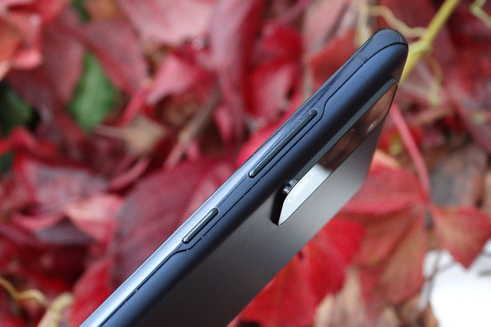 Разъема 3.5 мм нет, что было ожидаемо, а еще я заметил, что в моем экземпляре не работает сторонний переходник с разъема Type-C на 3.5 мм. В остальном все стандартно — лоток для карточек комбинированный, задние камеры ощутимо выпирают, а элементы управления стандартные — качелька регулировки громкости и кнопка питания. Также на корпусе можно обнаружить два микрофона, один из которых необходим для шумоподавления.