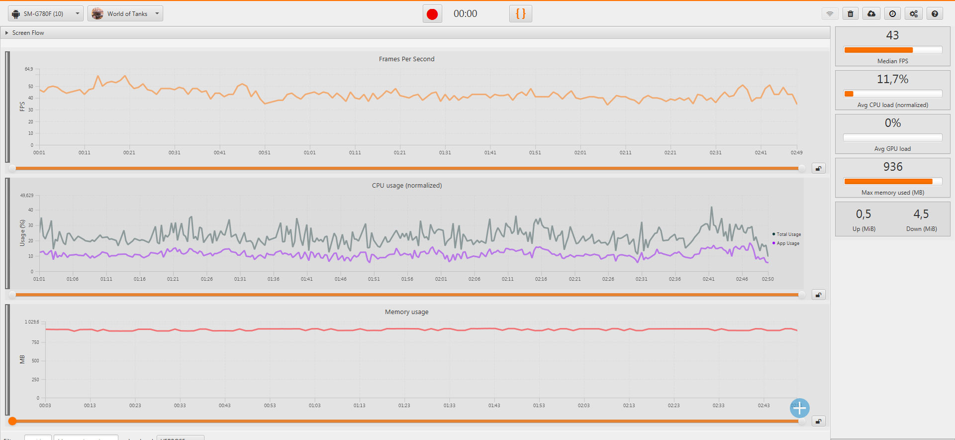 С играми больших проблем возникнуть не должно, хотя если долго играть, то все возможно. Сильные просадки кадров удалось заметить только в Fortnite при высоких, чуть ли не максимальных настройках графики. В PUBG Mobile получаем стабильные 40 FPS на графике Максимум/Ультра, но без чехла комфортно играть у меня не получается из-за постоянных случайных нажатий. В World of Tanks также все стабильно на высокой графике — 59-60 кадров в секунду, и разве что выставление дополнительных настроек на максимум приведет к просадкам примерно до 30 FPS. Все игры тестировались с помощью приложения Gamebench.
