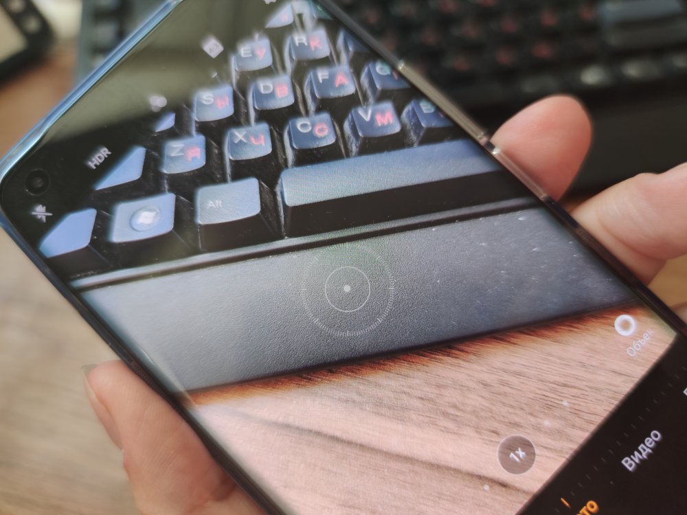 Дисплей в Vivo X50 Pro изогнут, ярок при любом освещении и крайне эффектен. Загнутые края экрана полностью функциональны, верхняя и нижняя рамки тонкие и почти незаметные. Миниатюрный объектив селфи-камеры расположен в верхнем левом углу и имеет диагональ всего 3,96 мм.