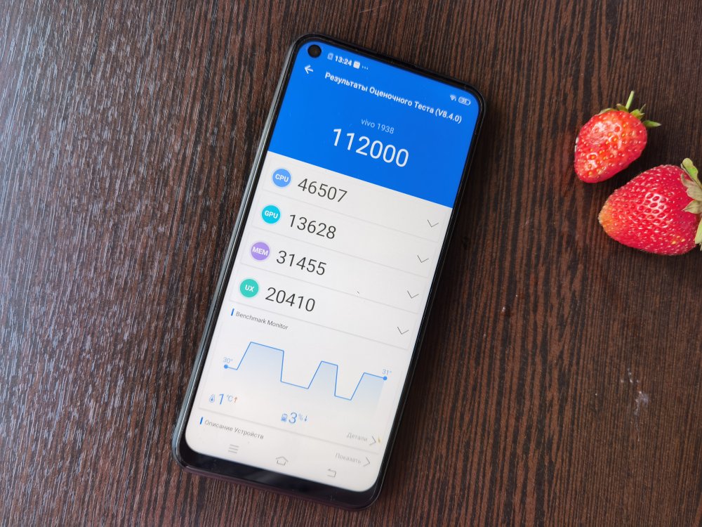 Невысокая производительность подтверждается и синтетическими тестами. В AnTuTu Benchmark Vivo Y30 выдал 111966 баллов. Это не слишком выдающийся результат даже для такого недорогого смартфона.