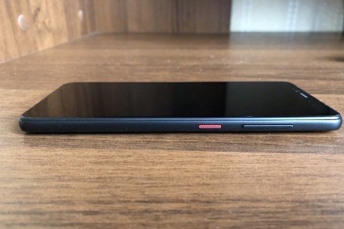 На правой боковой грани — место для кнопки включения, и она выделена ярко красным цветом – точно не запутаешься, куда нужно нажать, чтобы включить смартфон. Когда вы держите смартфон в правой руке, большой палец ложится прямо на кнопку включения, и за это, безусловно, стоит похвалить инженеров китайской компании. Чуть выше кнопки включения находится качелька громкости.