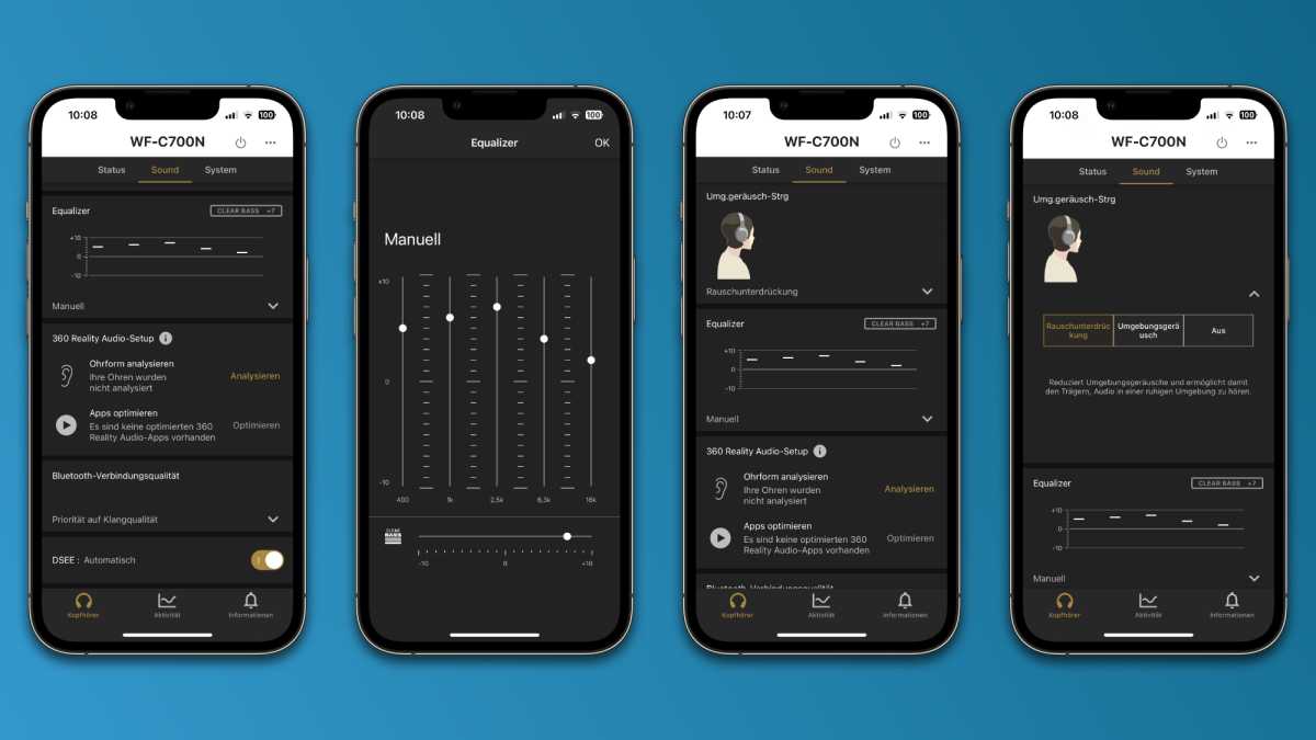 Как и многие другие производители, Sony также имеет собственное решение для создания виртуального объемного звука; на языке Apple это называется «3D-аудио», а в Sony — «360 Reality Audio». Как и в случае с Airpods, для этого необходимо сфотографировать уши, что является странной затеей, поскольку без посторонней помощи невозможно понять, правильно ли ты сфотографировал ухо, ведь нельзя одновременно фотографировать ухо и смотреть на дисплей смартфона.