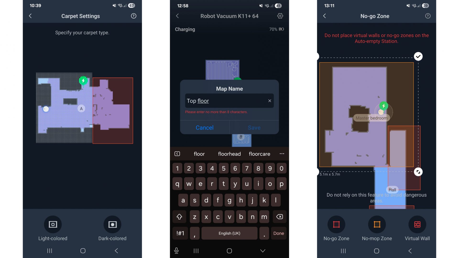 Как только вы доберетесь до нужного раздела, он очень похож на большинство других приложений для роботов-пылесосов, которые я использовала. Редактировать карту просто, и вы можете легко добавлять запретные зоны, а также объединять или разделять пространства. Варианты управления более ограничены, чем в других, более дорогих роботах-пылесосах, но все основные функции здесь есть.